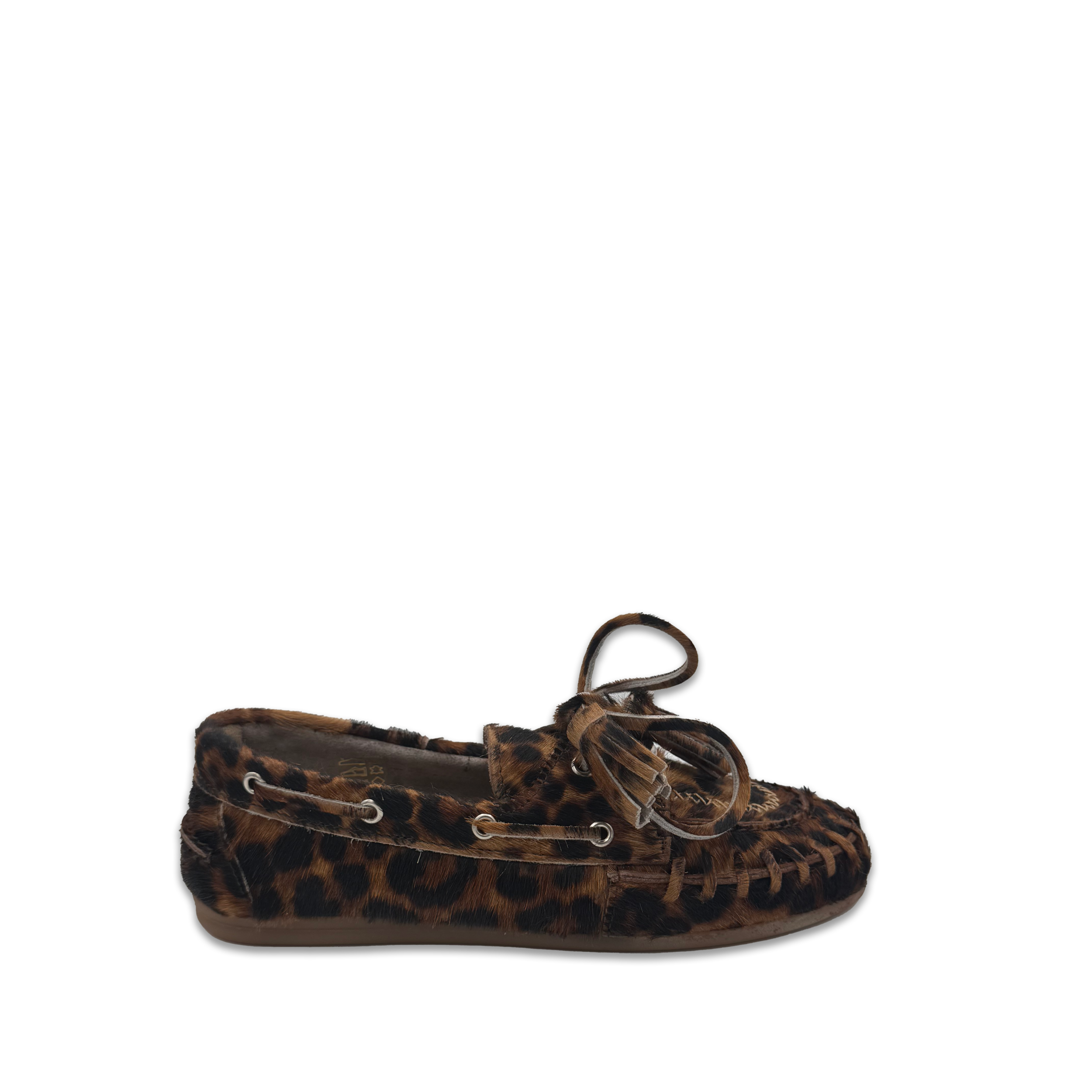 Loafer model Fringe in de kleur tijgerprint van het merk Posa.