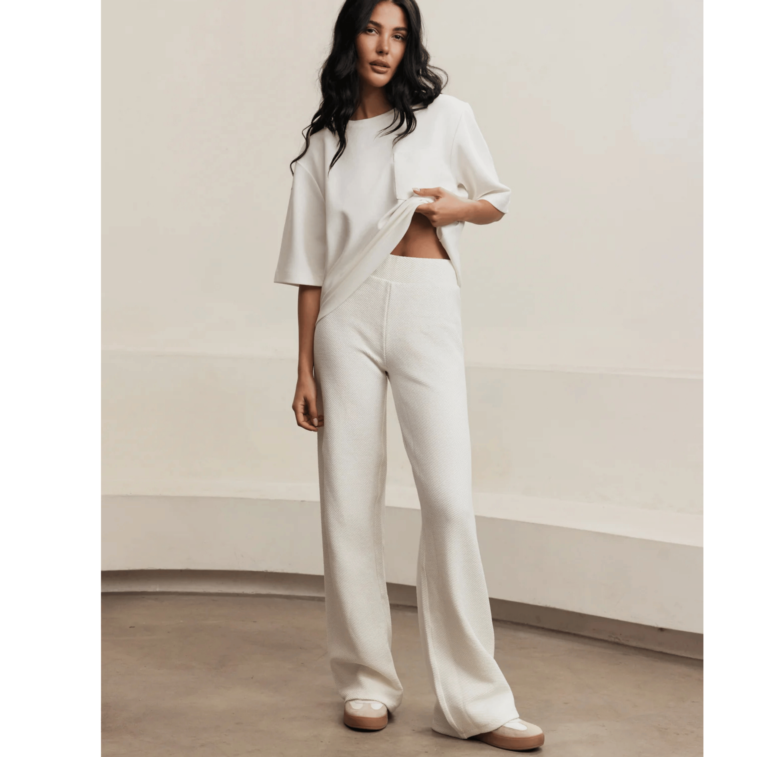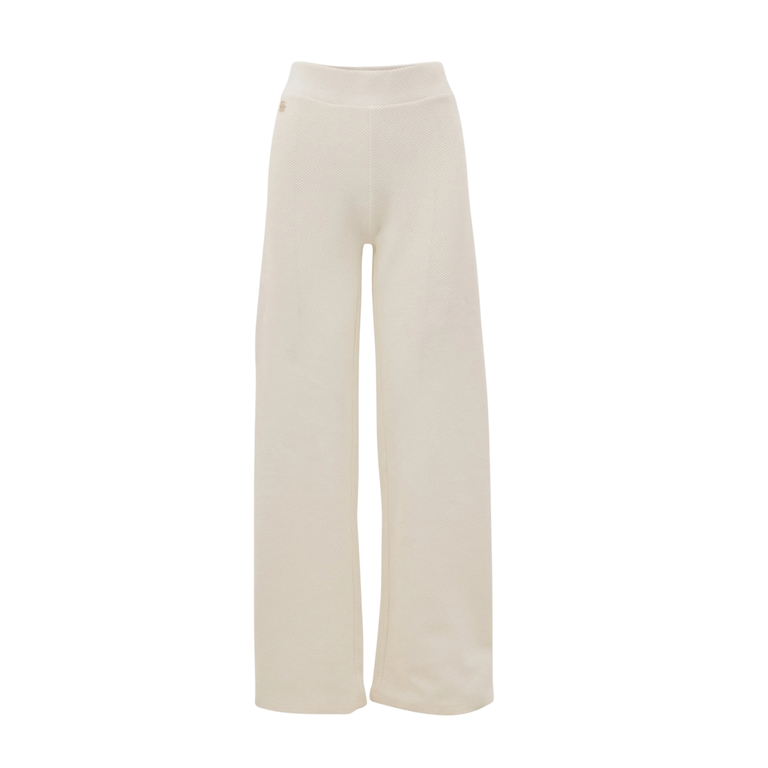Deze broek, gemaakt van 70% katoen, is uitgevoerd in een off white kleur. Perfect voor de zonnige dagen! De broek met een flared model is high-wasited en heeft een brede taille band. Style hem met de moon top voor een comfortabele, maar toch aangekleden look!
