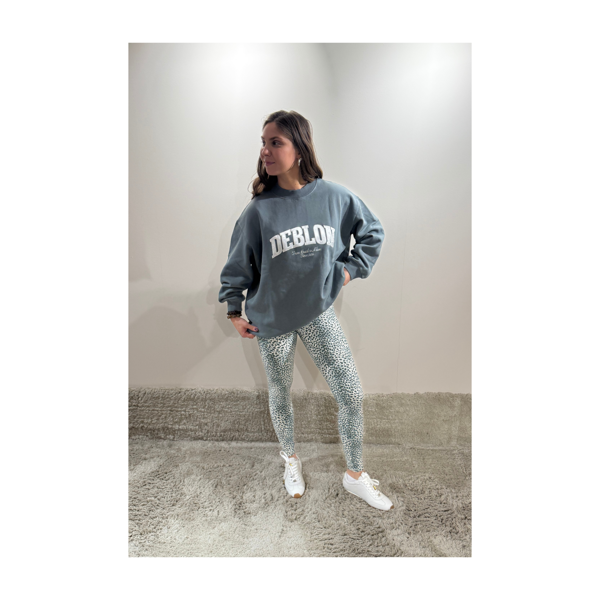 Deze classic legging is uitgevoerd in een kleine cheetah-print in groen en beige. Het model heeft een hoge band en is uitgevoerd in hetzelfde fijne materiaal als alle leggings van Deblon!