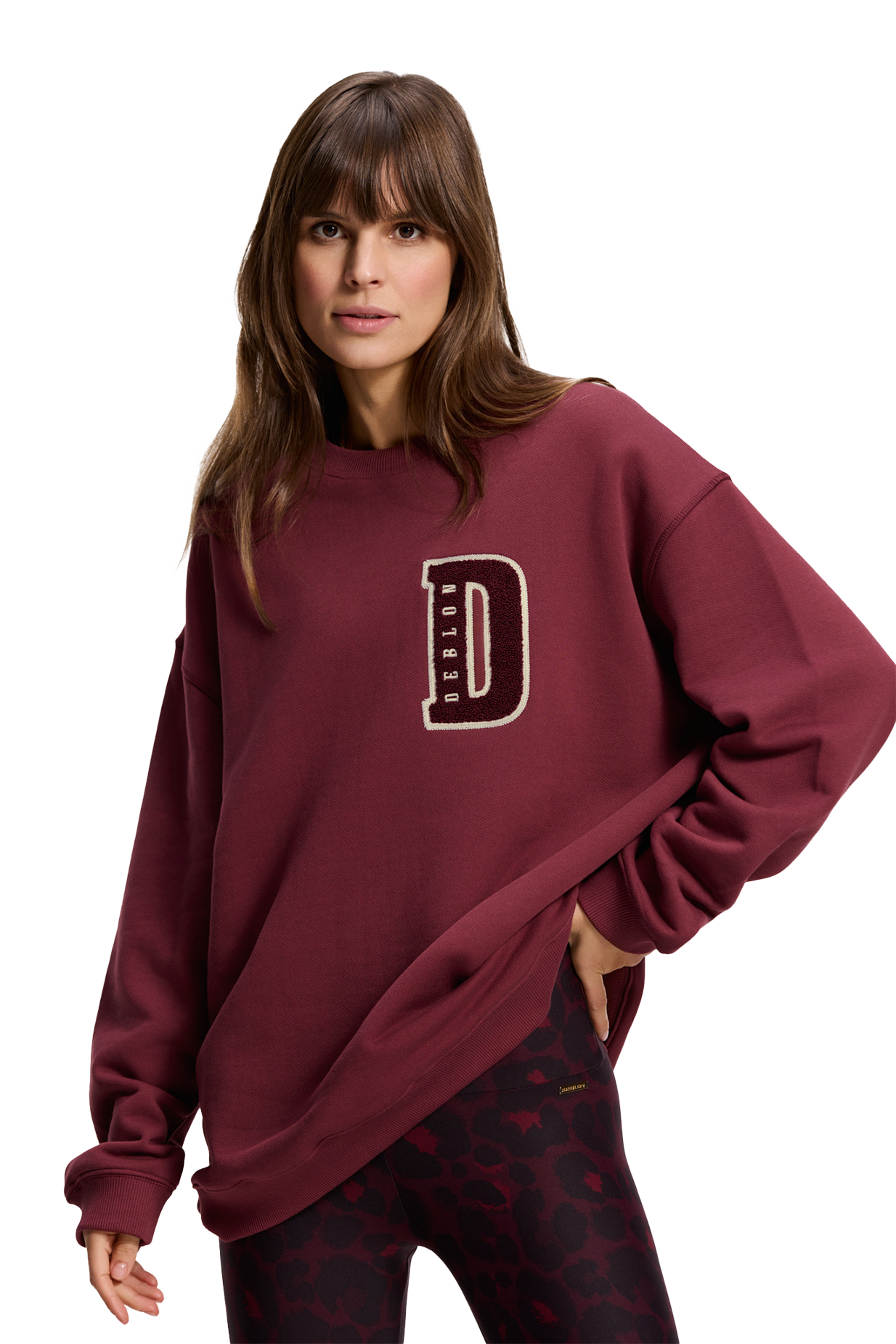 Deze zachte en katoenen sweater is uitgevoerd in bordeaux en heeft een ronde hals. Het model valt oversized. Op de voorkant vind je een grote D uitgevoerd in badstof. Twijfel je tussen de maat? Kies de kleinste.