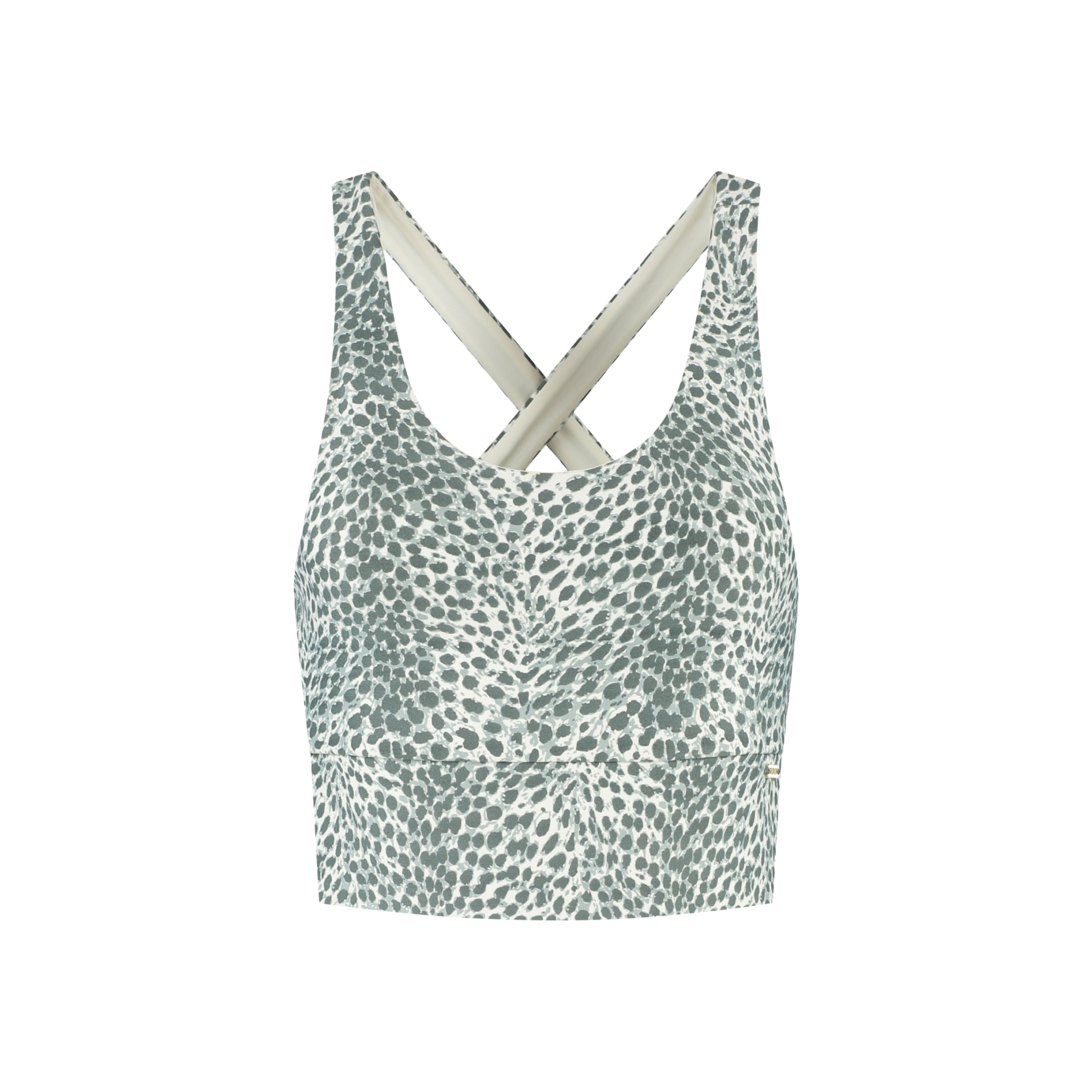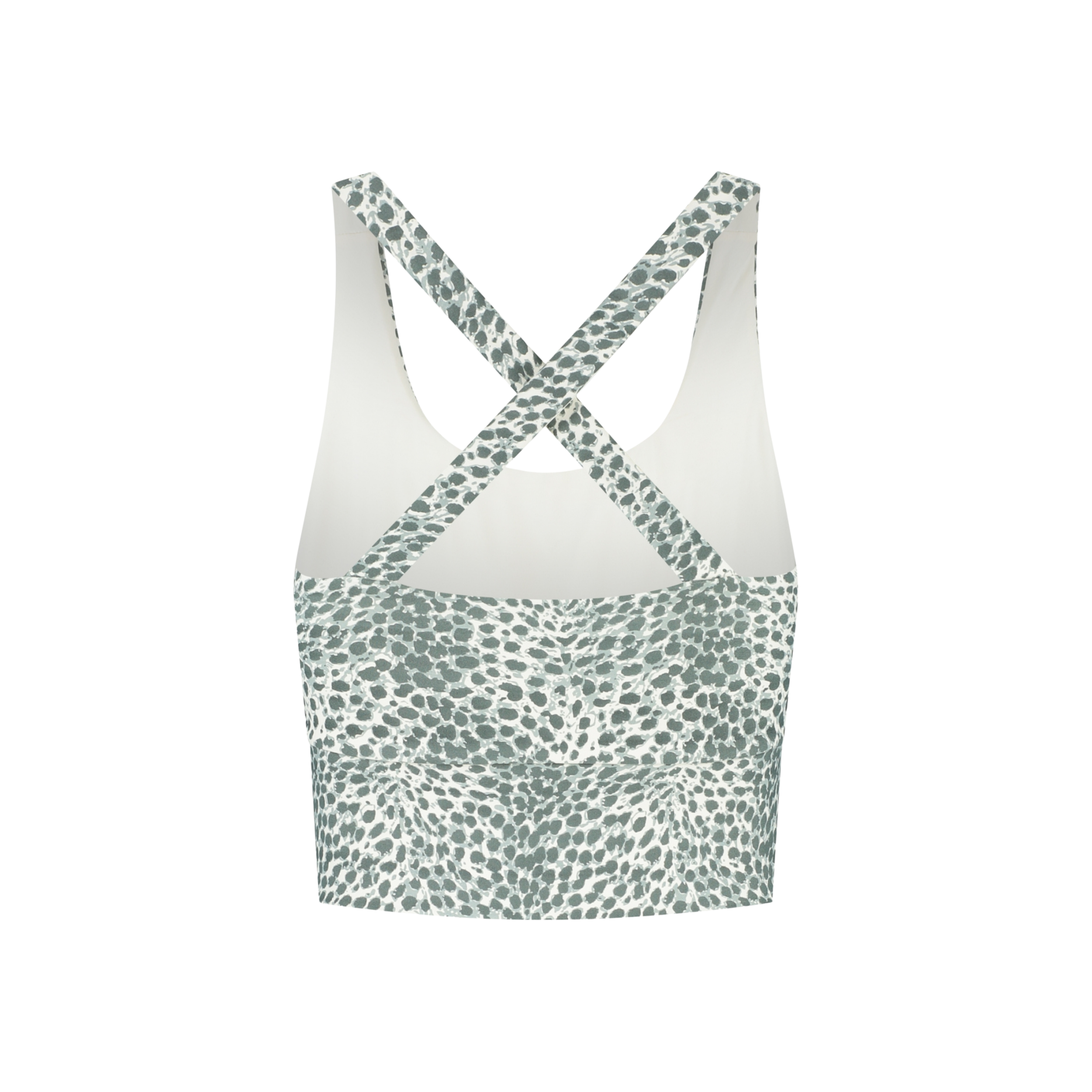 Deze opvallende sporttop met een groene cheetah print heeft een aansluitende zoomband, kruisbanden op de rug en uitneembare padded cups. Zo ben je verzekerd van goede ondersteuning. Hij is gemaakt van 88% polyamide en 12% elastane.