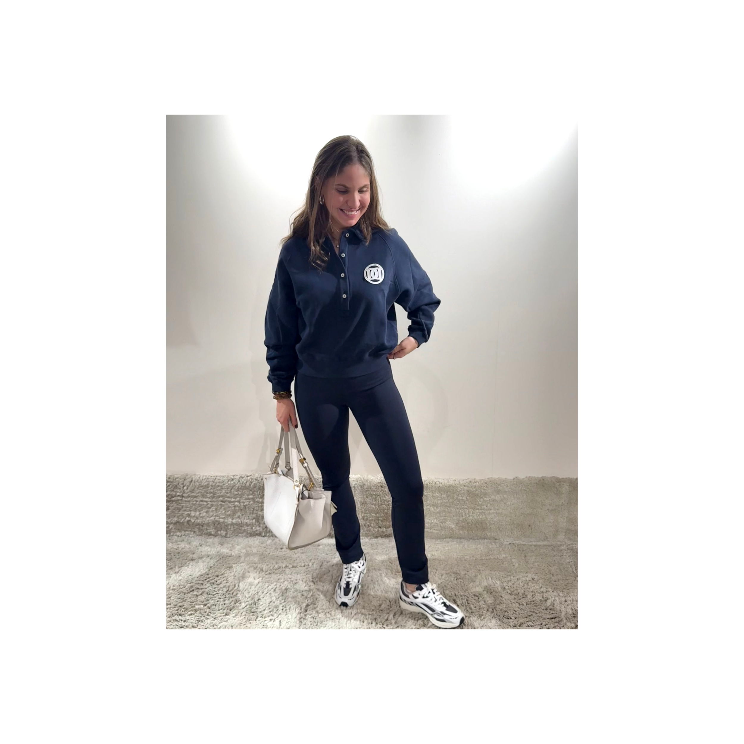 Sweater met kraagje en vier knoopjes op de voorkant. Verder heeft de trui nog het Deblon logo op de borst in het wit. De trui is gemaakt van 100% katoen.