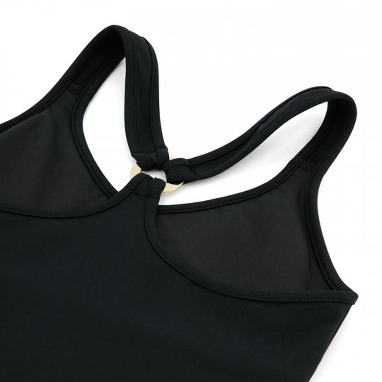 Deze mooie top is gemaakt van 88% polyamide en 12% elastane. De top heeft een goudkleurige ring op de crossover op de rug als detail. Dit geeft een erg vrouwelijke en luxe look. Door de uitneembare padding kun je de pasvorm personaliseren. De Zoe ringtop is tijdloos en altijd goed!