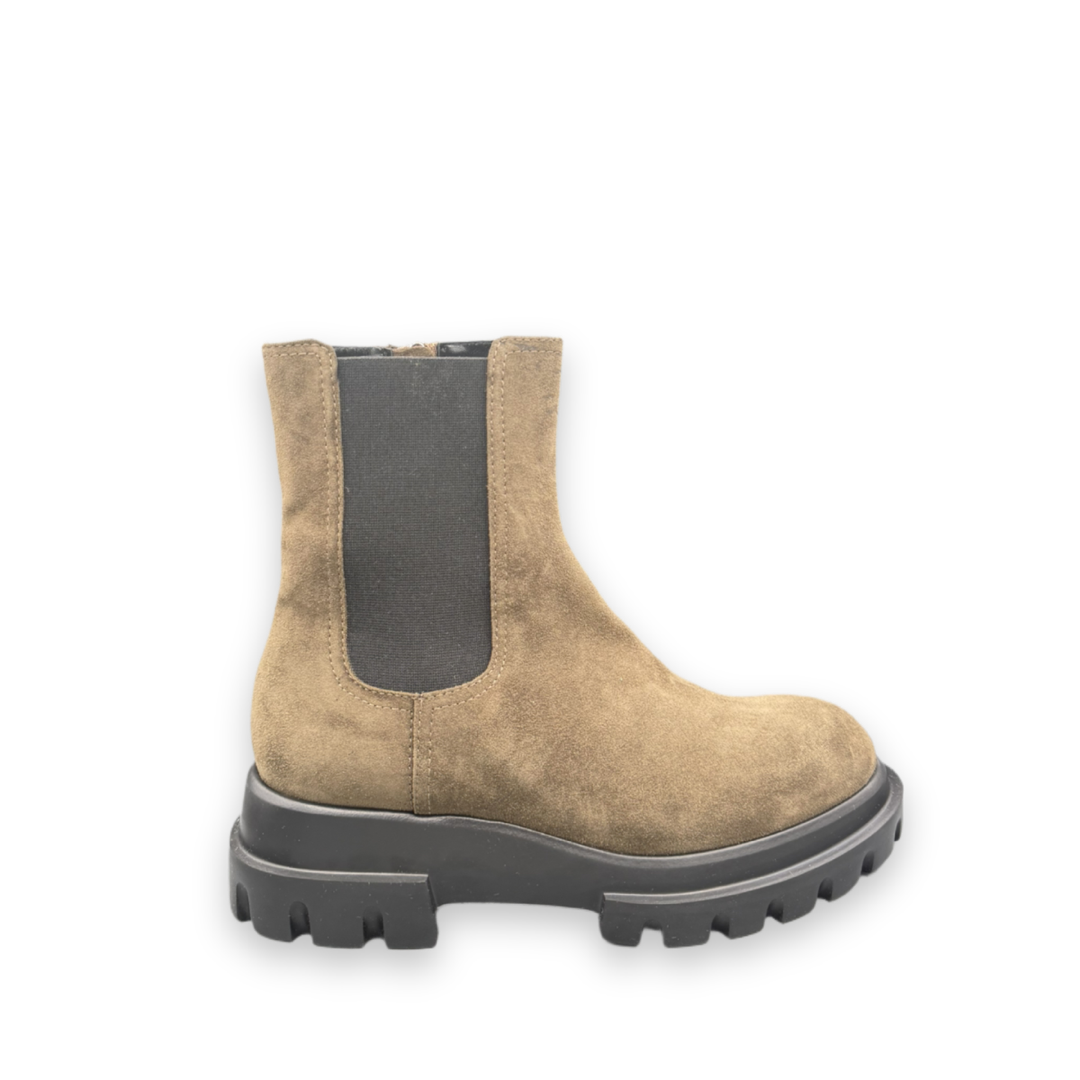 Deze korte laars gemaakt van zachte suède is uitgevoerd in een bruine kleur. De laars heeft een elastiek vlak op de zijkant. De binnenkant is gemaakt van glad leer. De geprofileerde rubberen zool geeft de laars een extra detail en tegelijkertijd optimale grip.