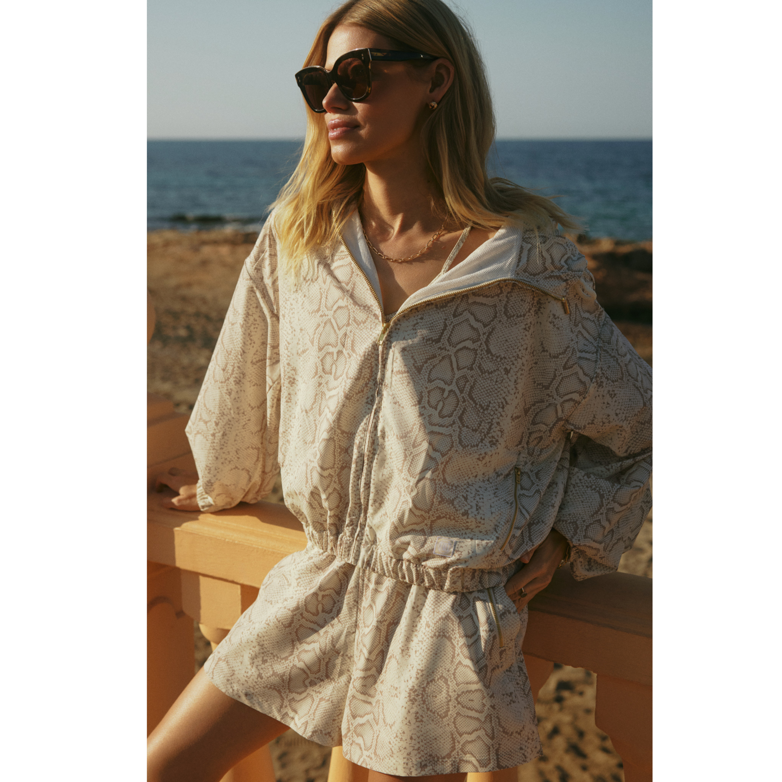 Dit sportieve jasje is gemaakt van 87% polyester en 13% spandex, wat hem super licht maakt. Opvallend aan het jasje is de slangenprint. Het jasje heeft een capuchon, ritssluiting en elastische boording rondom de mouwen en aan de onderkant. De mouwen vallen wijd. Combineer de jas met de Donna short voor een sportieve, eyecatching outfit!