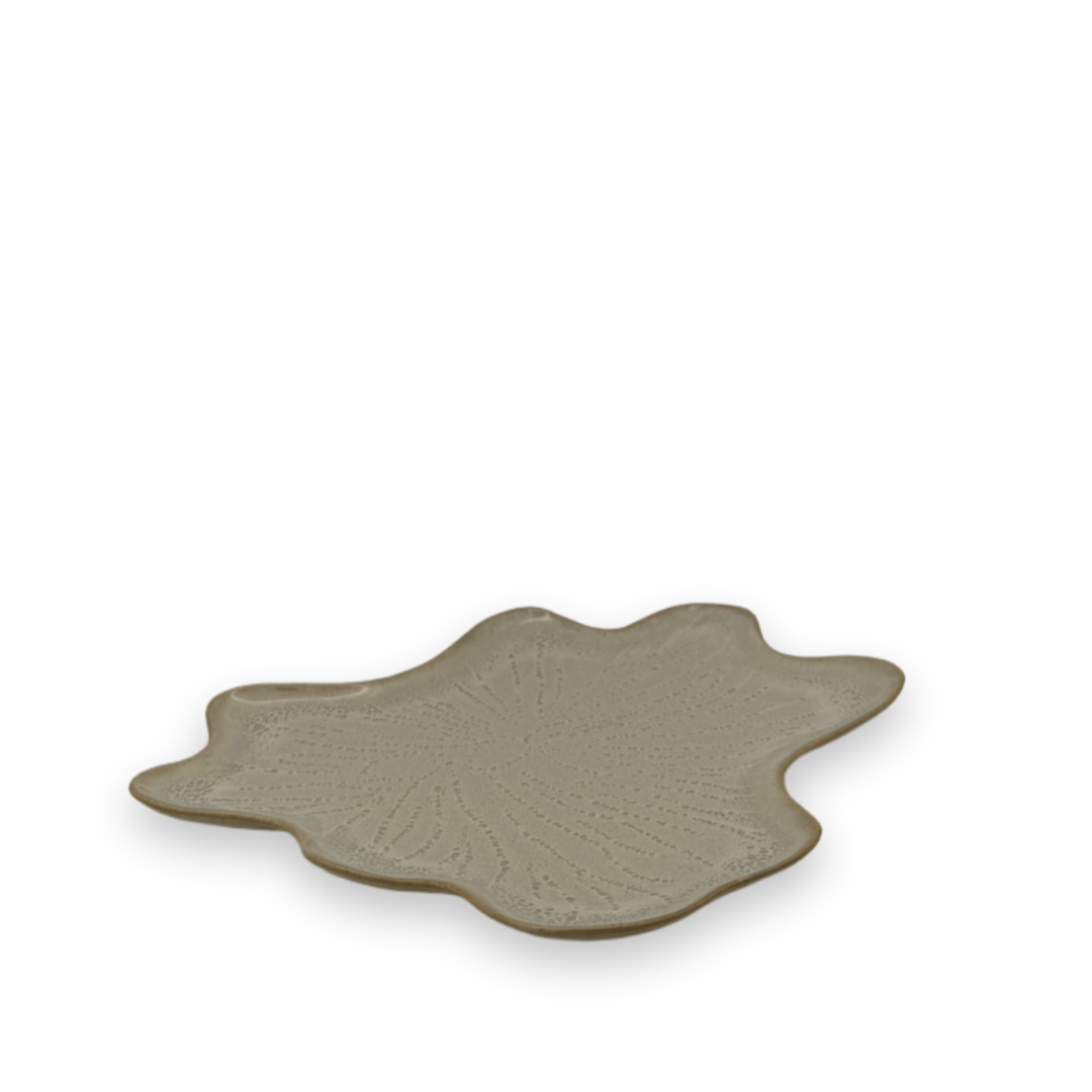 Dit serveerbord met bladvorm is gemaakt van keramiek in Portugal. Hij is uitgevoerd in een witte kleur. Het bord kan zowel in de oven als in de vaatwasser.