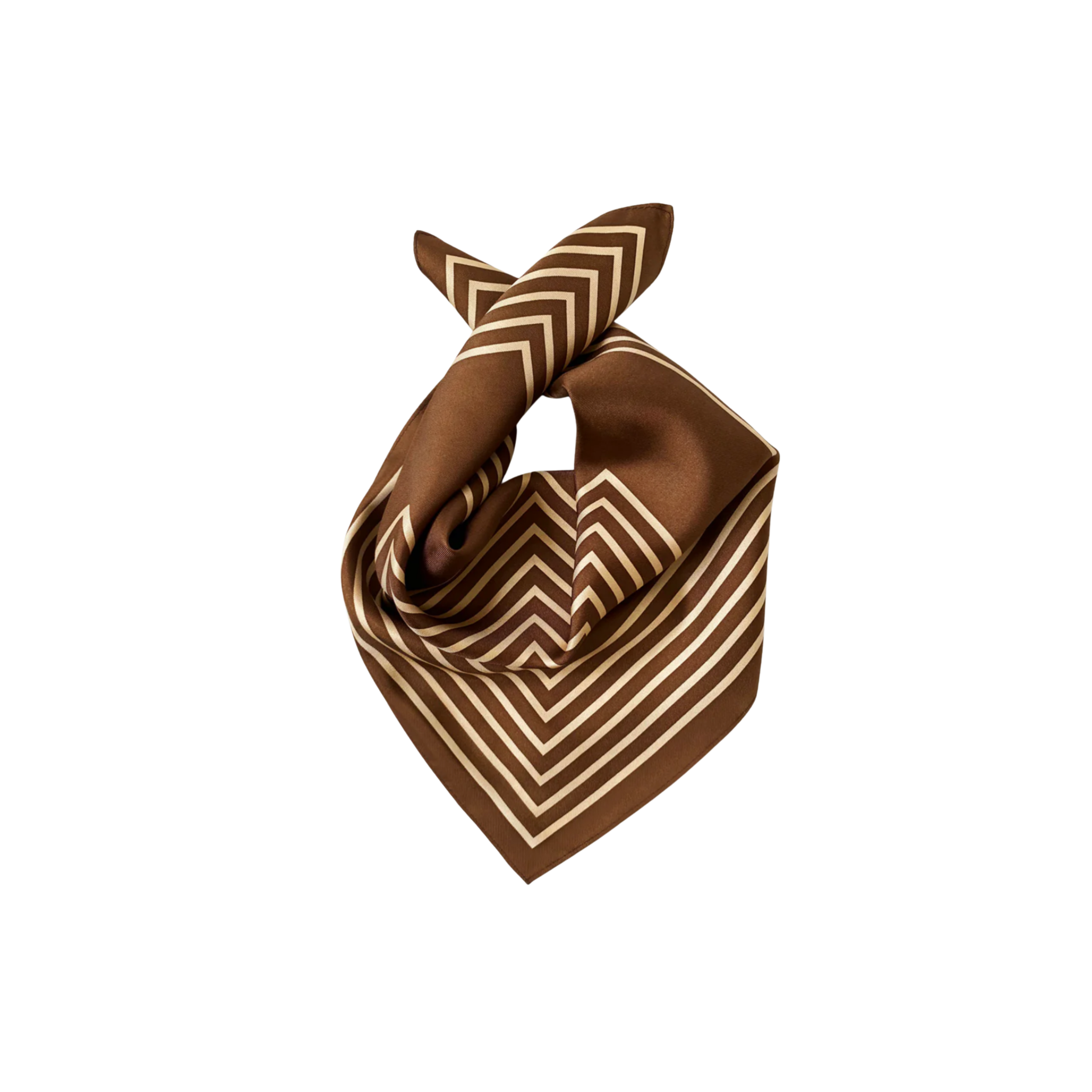 Deze sjaal, gemaakt van 100% zijde, is uitgevoerd in een bruine kleur met beige strepen. Style de sjaal om je nek, om je heup of zelfs om je tas. Talloze opties om je outfit compleet te maken!