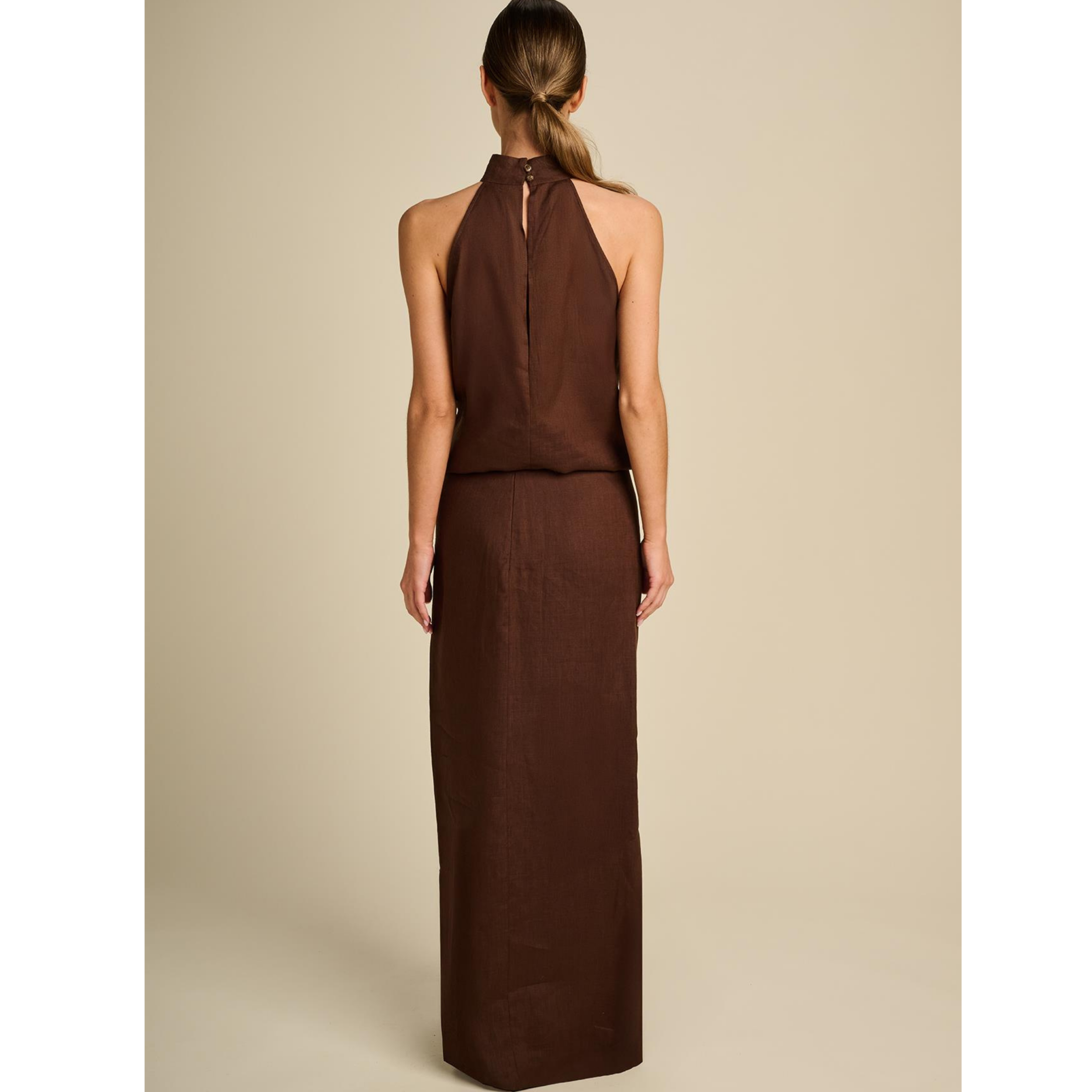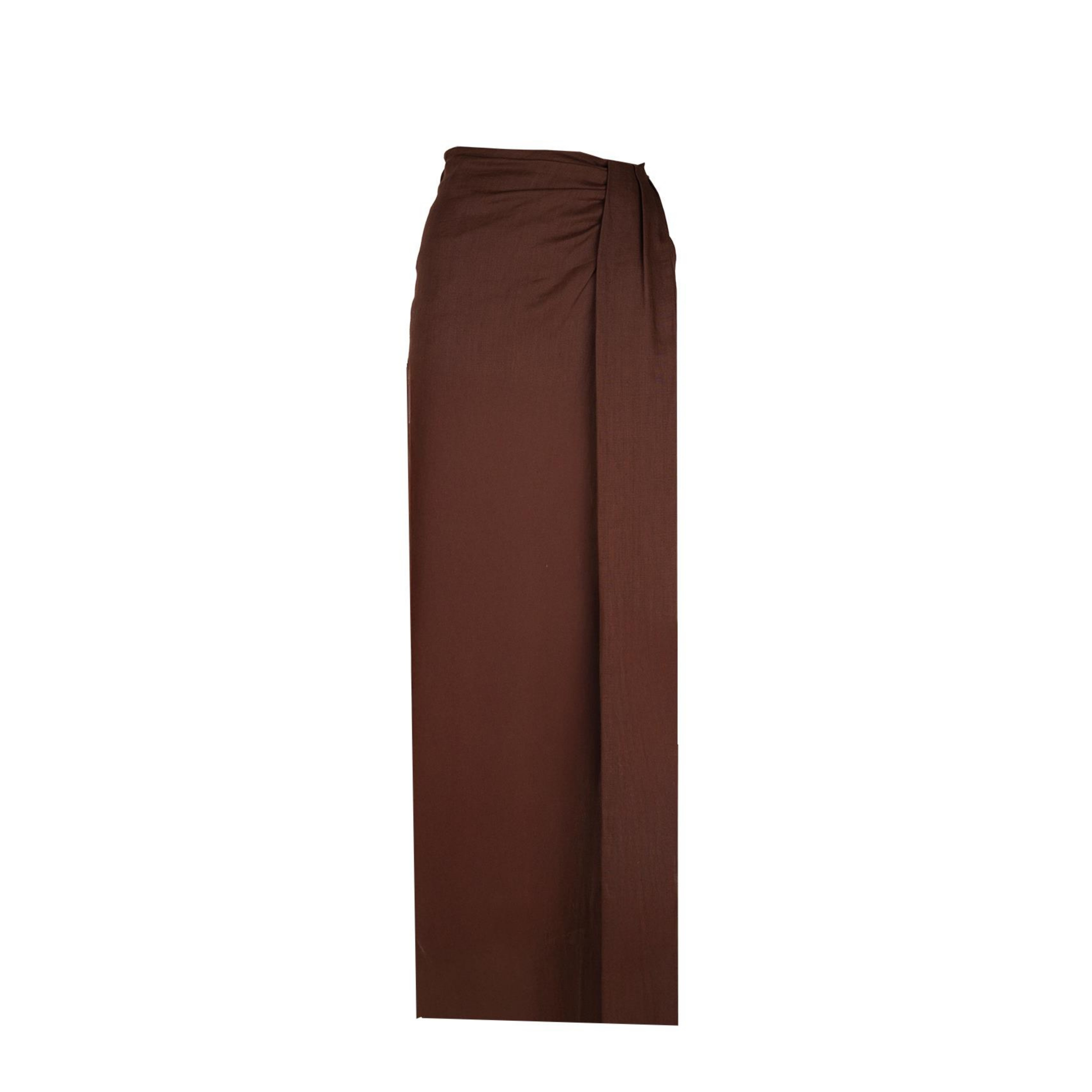 Deze rok, gemaakt van 100% linnen, is uitgevoerd in het bruin. De rok valt tot de enkel en heeft een split aan de zijkant. Aan de voorkant bij de taille is de rok gedrapeerd voor een chique effect. Combineer de rok met de Mystique top voor een volledige outfit. Ideaal voor de zomer.