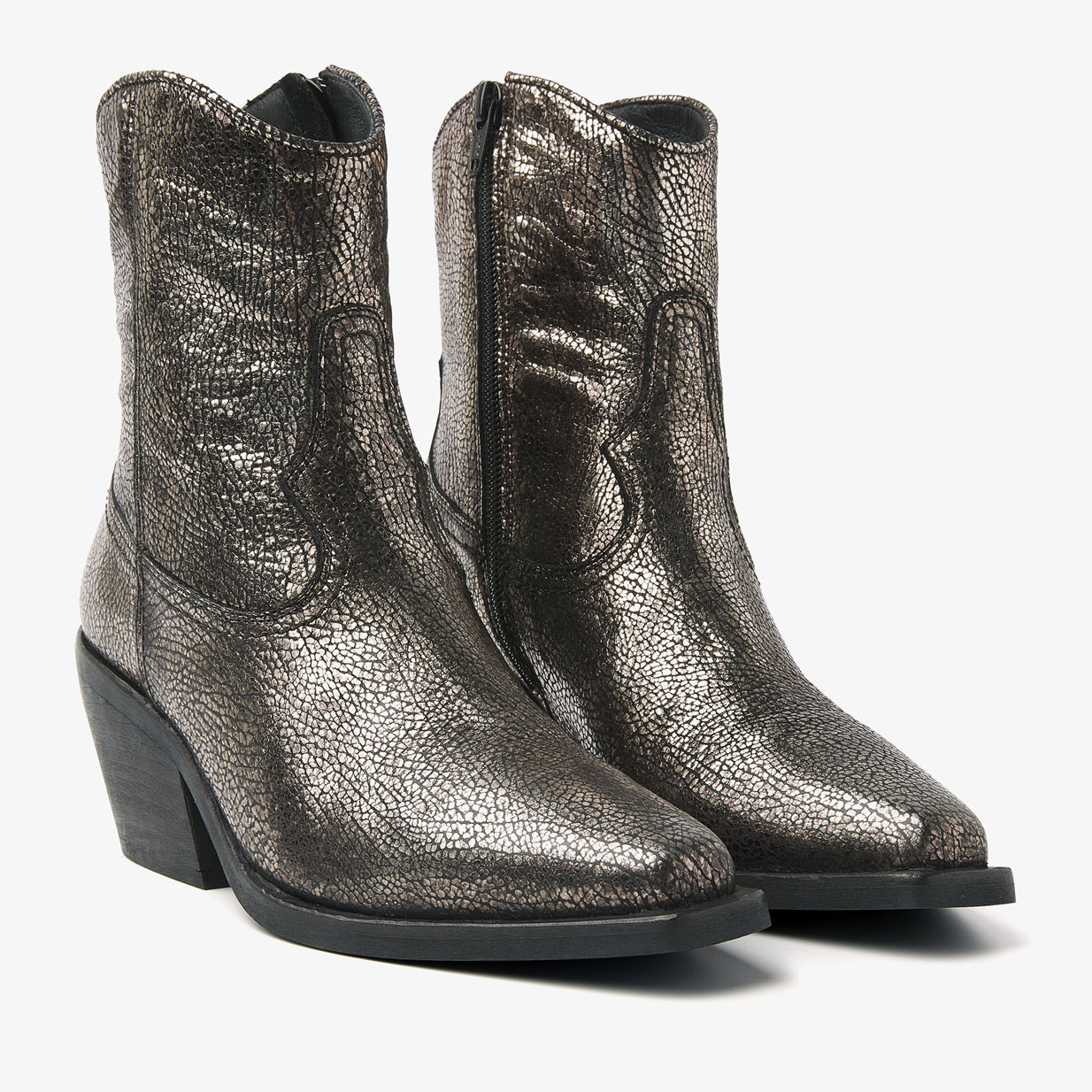 Deze enkellaarsjes zijn classy, tijdloos en hebben een vleugje western! De schuin aflopende blokhak geeft de schoen een stoere touch. Dit model is ook verkrijgbaar in bruin.
